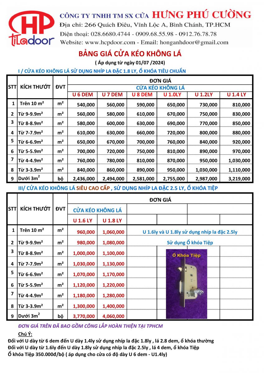 BẢNG GIÁ CỬA KÉO KHÔNG LÁ